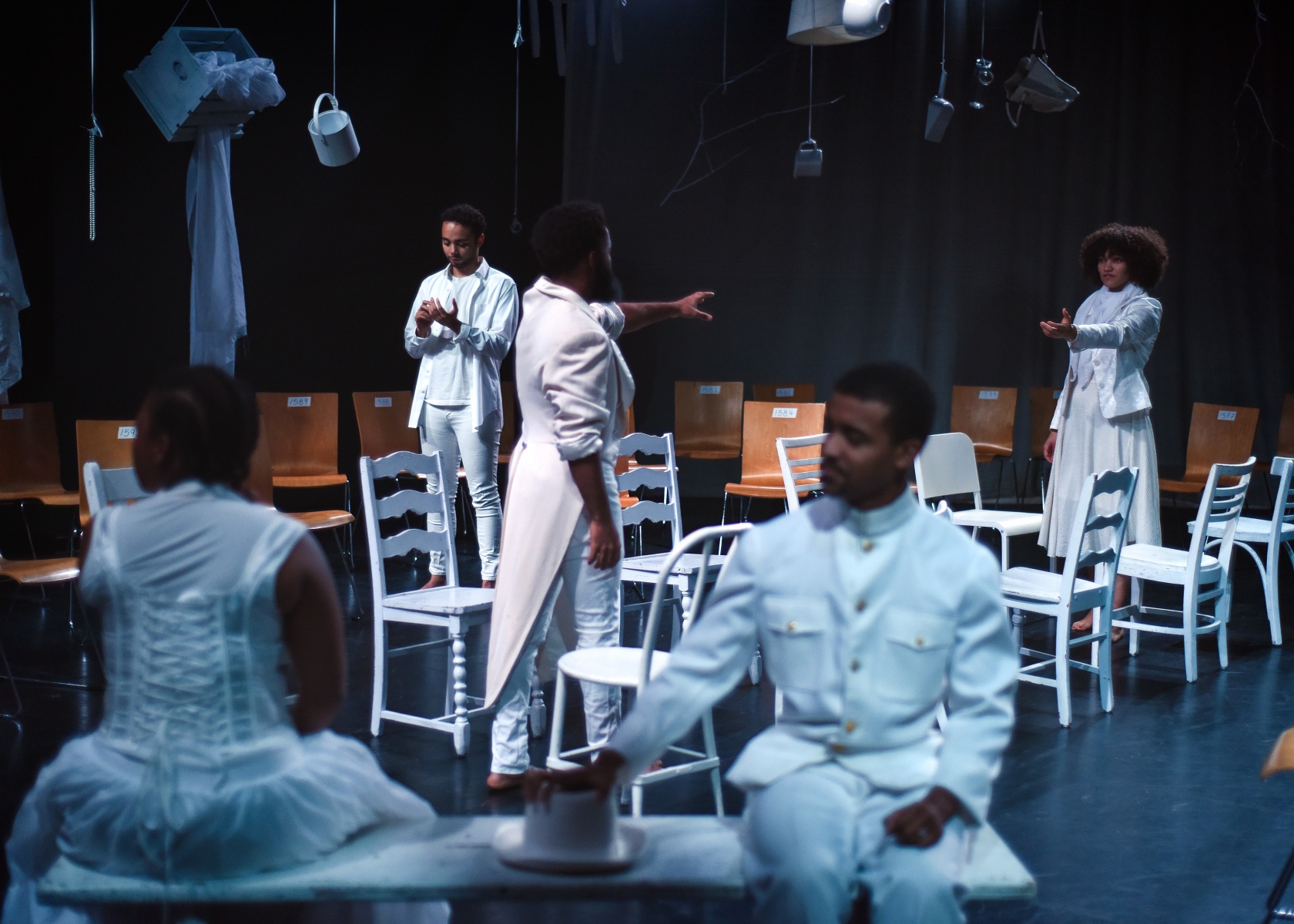 Trapped in a space they can’t survive, but can’t seem to leave, a family lives and dreams. As their world becomes increasingly claustrophobic, these dreams begin to fall apart around them. By submerging the privileged tensions of Chekhov’s Three Sisters in an artificially white vacuum, the production interrogates western ideology and asks: how can blackness exist inside this construct? The production is an exploration into black diaspora psychology. Particularly of people being taken away from their homeland, forced to live in another space and the through time the memory and experience of their home slowly fading away.